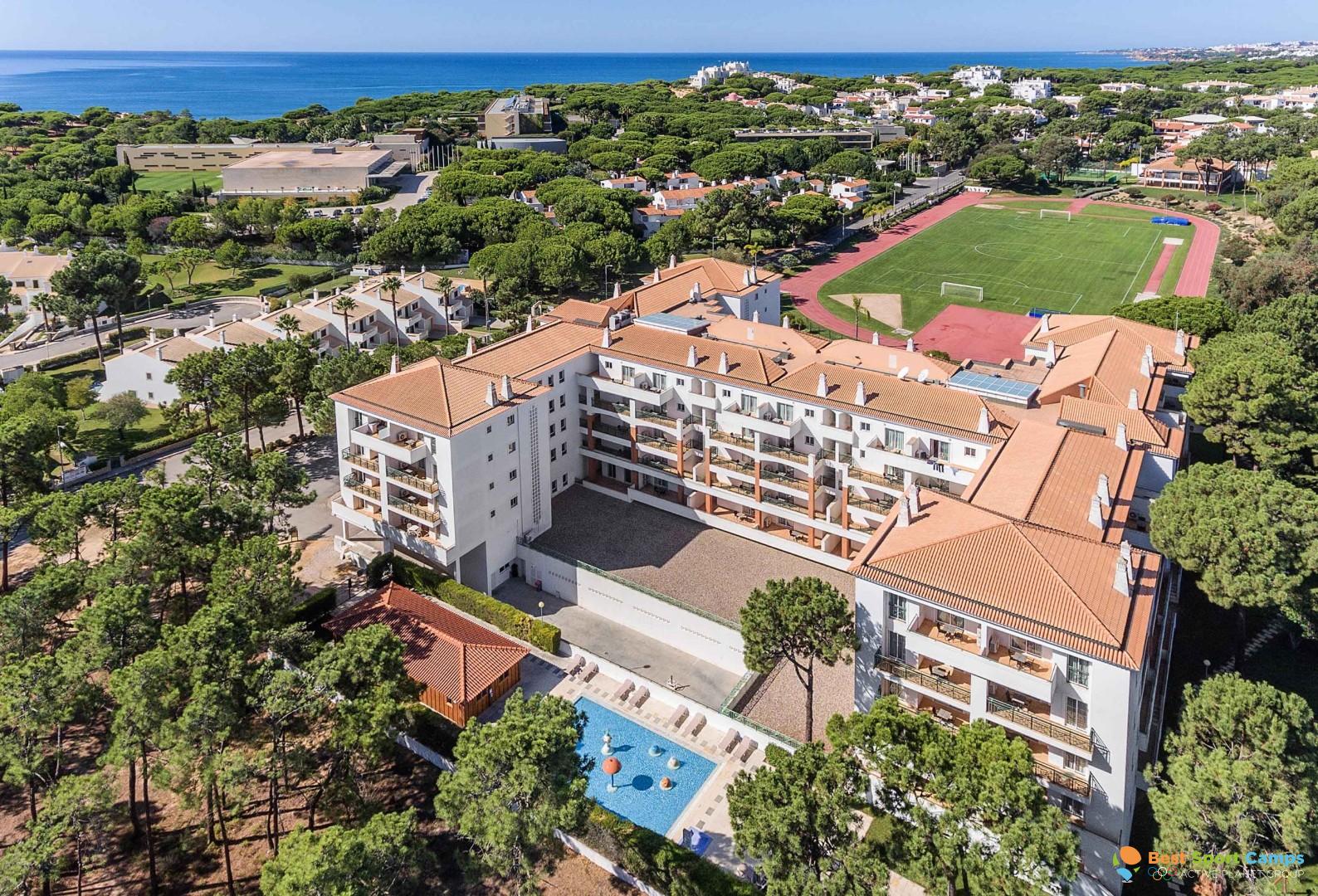 AP Victoria Sports & Beach in Albufeira, Portugal, bietet Trainingslager mit hochwertigen Sportanlagen und Trainingseinrichtungen als kompaktes Fußball-Trainingszentrum. Der Hotel-Fußballplatz ist ein naturrasiger Fußballplatz (50 m x 100 m) für Technikzirkel, Gruppentaktik und Abschlüsse. Gleichmäßiger Rasen-Fußballplatz und Rasen-Fußballfeld sorgen bei eng getakteten Einheiten für konstantes Balltempo und sicheren Stand; die direkte Lage am Hotel erleichtert Logistik und Zeitplan.