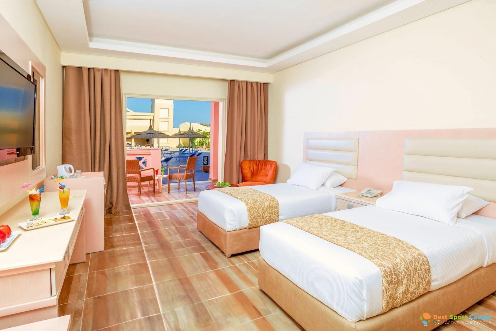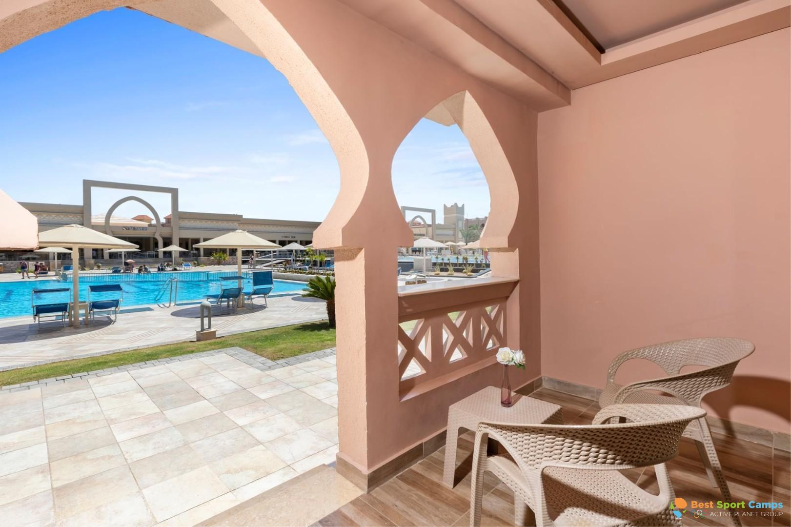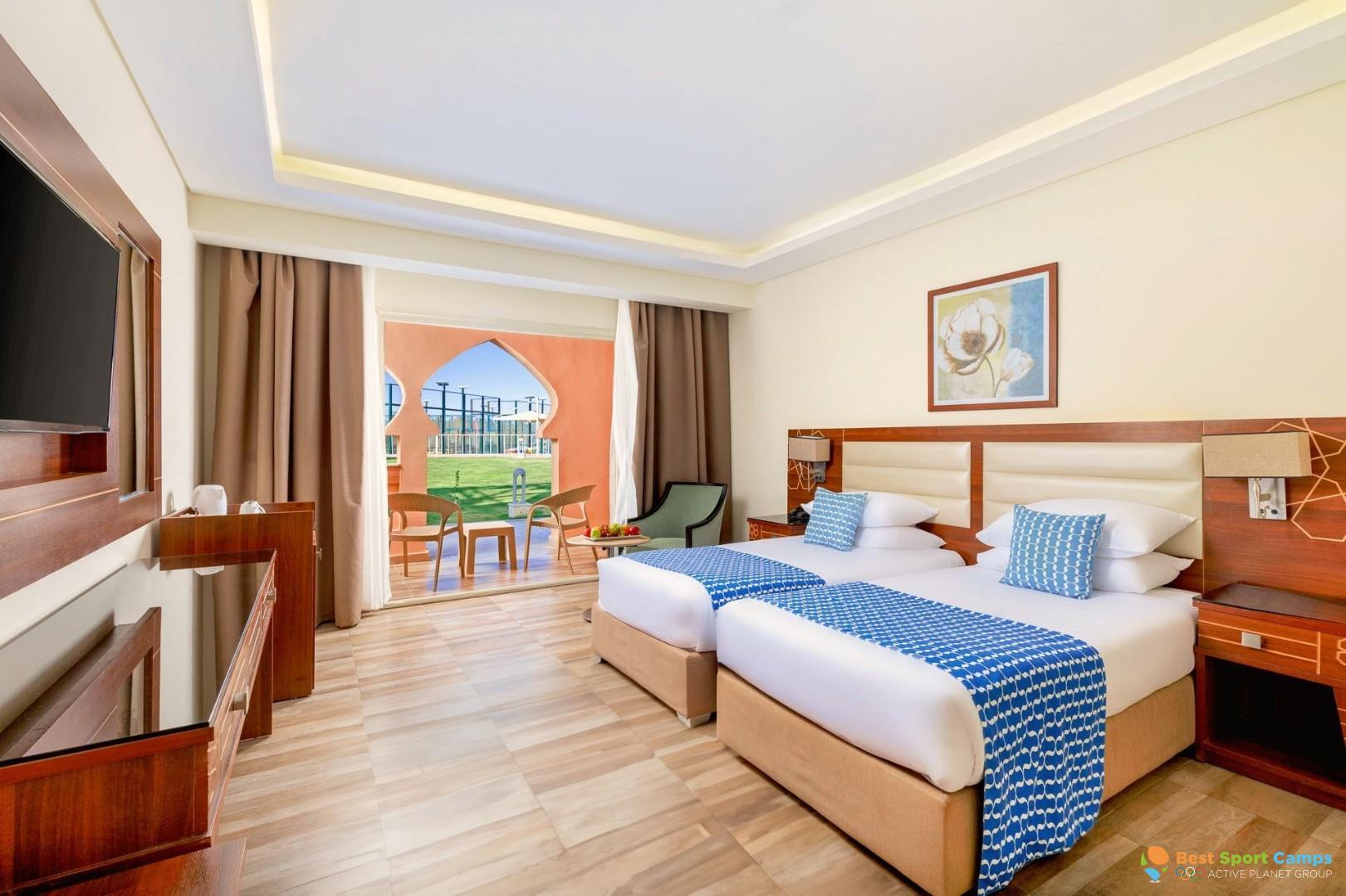 This nice and modern 4-star All-inclusive Resort is located just a 15-minute drive from Hurghada International Airport. The hotel is located less than 500 meters from the Red Sea. Our teams can use the free shuttle bus to the beach at any time during the day. Comfortable all-inclusive accommodation, modern big standard double and triple or deluxe double and triple rooms, also single rooms for coaches and elite athletes, and a big hotel territory. Hotel has 4 different modern lagoon-style outdoor pools, separated for adults and children.
